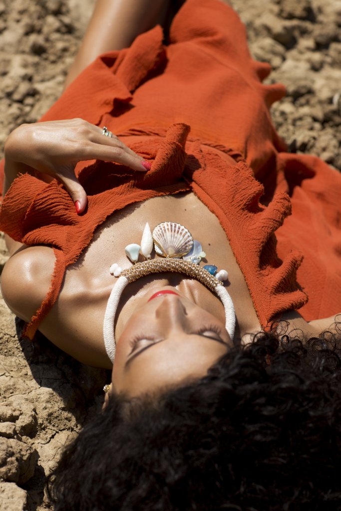 Wearing: DANA BUDEANU dress / ZARA shoes / PARFOIS necklace, brooch / HAND MADE Mauritius bag